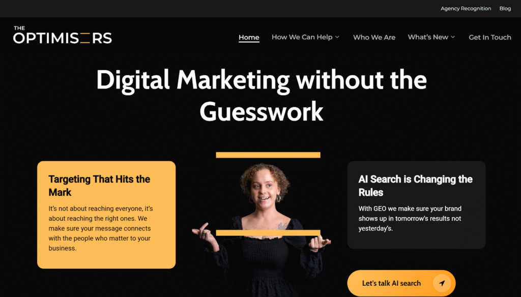 The Optimisers (formerly The Outcomes Agency) is a New Zealand and Australian-based agency founded in 2009 that aims to assist growth-oriented businesses to get quantifiable outcomes by integrating both data-driven insights and actionable strategies. They combine SEO, SEM, GEO, AEO, analytics, and creativity in their services to provide smooth business results.